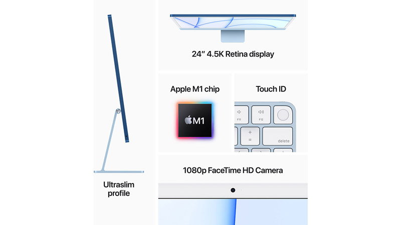 جهاز iMac 2021 الجديد كليًا يتمتع بتصميم نحيف للغاية يبلغ سمكه 11.5 ملم فقط مع شاشة ريتنا قياس 24 ″ بدقة 4.5K مع 11.3 مليون بكسل وما يصل لـ 500 شمعة من السطوع، إلى جانب الدقة المذهلة تتميز شاشة اي ماك الجديدة بفضاء ألوان P3 واسع يوفر مساحة لونية أكبر تكملها تقنية True Tone لتجربة مشاهدة أكثر طبيعية.