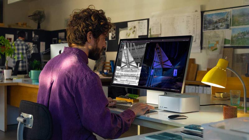 من ناحية أخرى، فإن شاشة Mac Studio تتوافق بشكل مثالي مع أي جهاز ماك آخر، تتميز شاشة Retina بقياس 27 بوصة بدقة 5K وكاميرا فائقة الاتساع بدقة 12 ميجابكسل مع Center Stage ونظام صوت عالي الدقة مكون من ستة مكبرات صوت مع صوت مكاني.