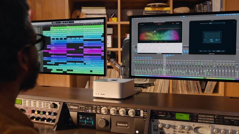 من ناحية أخرى، فإن شاشة Mac Studio تتوافق بشكل مثالي مع أي جهاز ماك آخر، تتميز شاشة Retina بقياس 27 بوصة بدقة 5K وكاميرا فائقة الاتساع بدقة 12 ميجابكسل مع Center Stage ونظام صوت عالي الدقة مكون من ستة مكبرات صوت مع صوت مكاني.