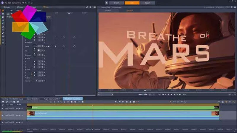 يحتوي PowerDirector 365 على العديد من الميزات الاحترافية، الجدول الزمني المكون من 100 مسار وهو مليء بالعديد من أدوات التثبيت وتصحيح الفيديو والتأثيرات الاحترافية والتحرير متعدد الكاميرات وتتبع الحركة.