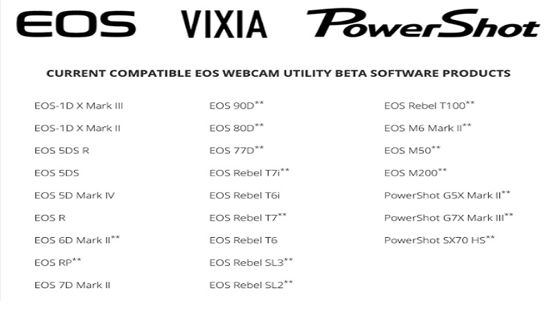 هذه أخبار جيدة بشكل خاص لمستخدمي كاميرات DSLR من كانون، تلك المزودة بمستشعر خاص”Crop sensor” نظرًا لأن أحدث الموديلات فقط – Rebel T8i و Rebel SL3 و EOS 7D Mark II و EOS 90D – يمكنها إخراج اشارة فيديو نظيفة عبر HDMI، يعمل EOS Webcam Utility من خلال اتصال USB بدلاً من HDMI وهو متوافق بالفعل مع جميع الكاميرات أدناه: