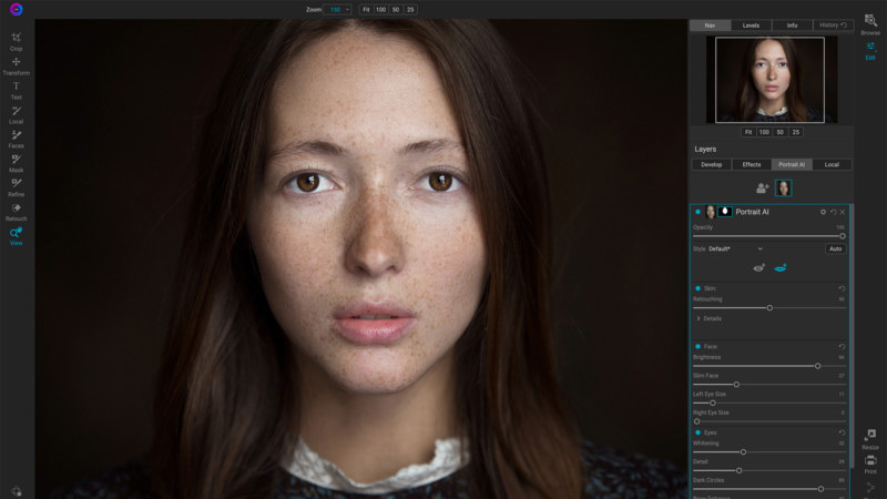 كما يوحي الاسم، ON1 Portrait AI هو تطبيق قائم بذاته (متاح أيضًا كمكوِّن إضافي) يعتمد على تقنية التعلم الآلي لتبسيط عملية تنقيح ومعالجة الصورة، سيتنافس التطبيق مع أدوات تحرير الصور التي تعمل بالذكاء الاصطناعي والمتوفرة بالفعل في Luminar 4.0 والتي تأتي إلى Luminar AI؛ ومع ذلك يبدو أن ON1 قد اتخذت نهجًا “احترافيًا” في كيفية السماح باستخدامات لتطبيق هذه الميزات.