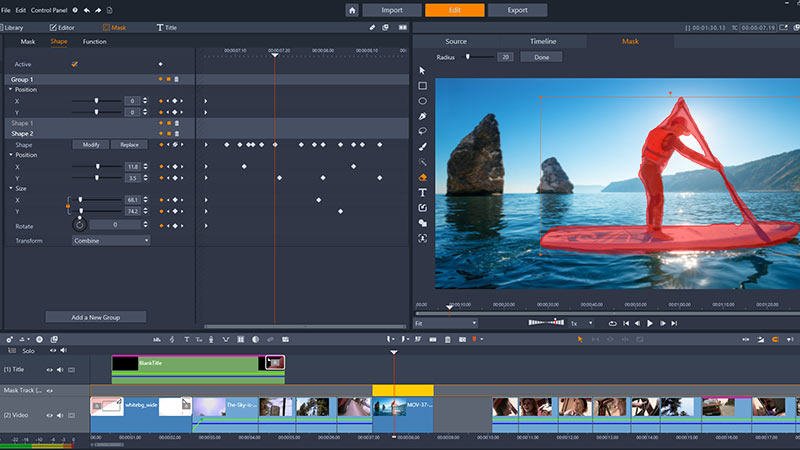 – أداة Mask للفيديو محسّنة لإنشاء أقنعة وتعقبها في مشهدك.
