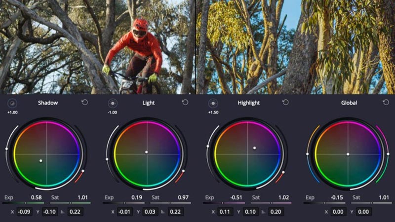 تتيح لك لوحة HDR إنشاء تعديلات ألوان مع التدرج المخصص لنطاقات لونية معينة مما يمنحك تحكمًا إبداعيًا أكثر لإجراء تعديلات دقيقة، تشتمل العجلات على عناصر تحكم في التعرض والتشبع لكل منطقة، هذه الاعدادات تدرك فضاء الألوان بحيث تحصل على نتائج موحدة بشكل ملحوظ.