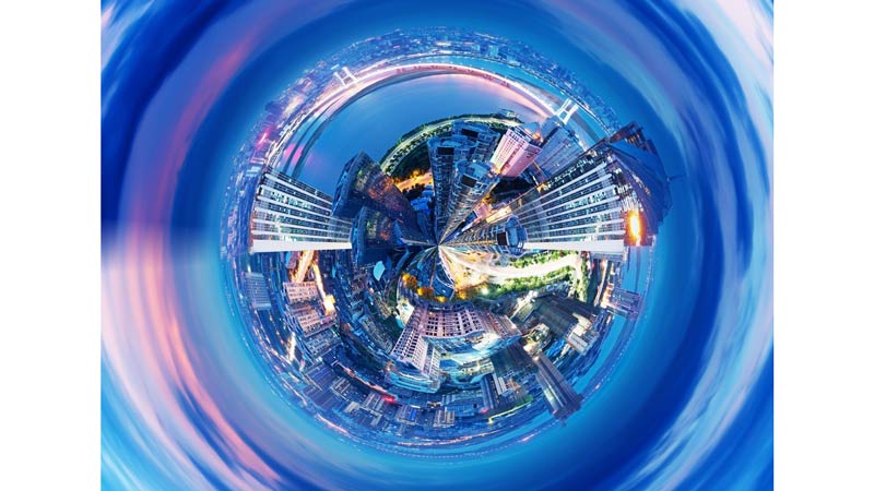 تذكر أن ناتجك النهائي هو كرة بدلاً من صورة مسطحة. لذلك ، ستحتاج إلى تشويه صورة أو نص لمطابقة انحناء الفيديو الكروي لجعله يبدو مسطحًا، إنها ليست قاعدة صارمة بشكل خاص ولكن قد تضطر إلى استخدام محرر فيديو خاص لصناعة عناوين أكثر احترافية.
