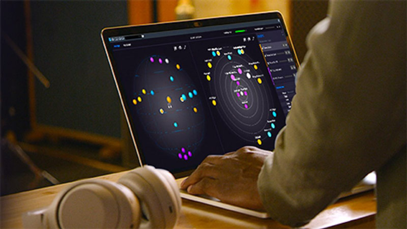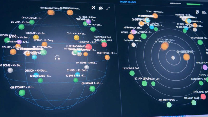 • وضع الأصوات الفردية مثل الغناء والكورس والبيانو والجيتار والباس وحتى أصوات الجمهور الحي في مجال صوت كروي 360 استنادًا إلى تقنيات الصوت المكاني من سوني.