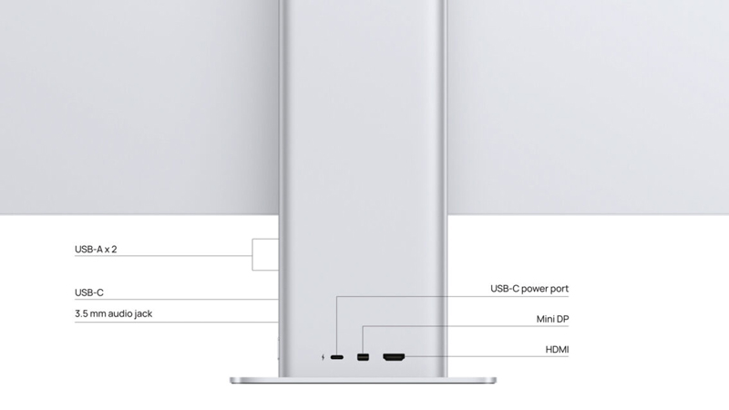 يمنح اللون الفضي للشاشة مظهرًا انيقاً، يتصل الحامل بالشاشة عبر مفصلة من الفولاذ المقاوم للصدأ والتي من شأنها أن تسمح بالتحريك السلس عند ضبط الشاشة، يمكن تحريك الشاشة بمقدار 110 مم رأسياً ويمكن إمالتها للأمام والخلف من -5 درجات إلى 18 درجة.
