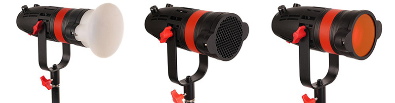 يحتوي مصباح ال اي دي الجديد على عدسة فريسنل توفر ضوء موحد وخالي من النقطة الساخنة Hotspot مع القدرة على ضبط المسافة بين العدسة ومصدر LED مما ينتج عنه شعاع ضوء قابل للتركيز، في الخلف، يمكنك العثور على مقابض التحكم لضبط درجة حرارة لون الضوء من 3200 إلى 5600 كلفن والمفتاج الاخر لضبط قوة الضوء.