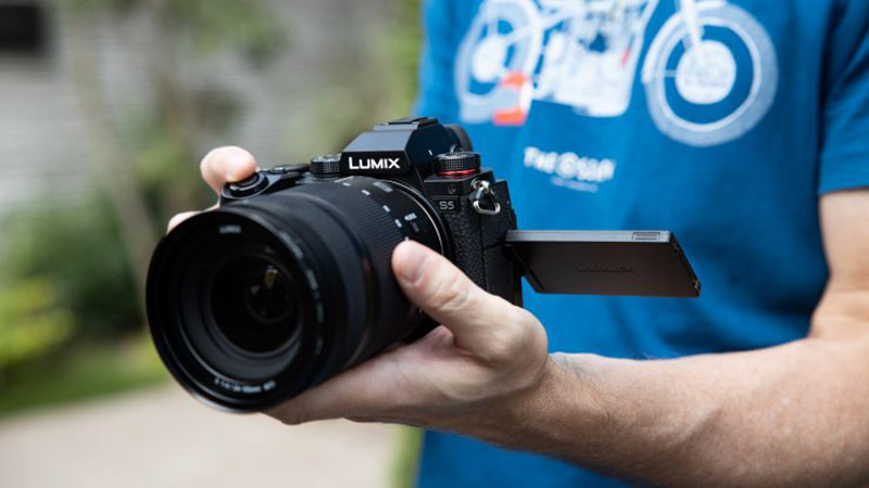 تجمع Lumix S5 كل هذا في هيكل أكثر إحكاما يستخدم فتحات بطاقة SD مزدوجة واحدة UHS-II وواحدة UHS-I بدلاً من SD و CFExpress، وشاشة LCD منخفضة الدقة (1.84M نقطة) وعدسة معاينة الكترونية EVF بدقة 2.36 مليون نقطة وبدون شاشة LCD في الأعلى.