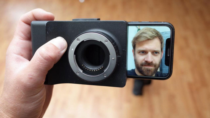 يحتوي الجزء الخلفي من الكاميرا المصنوعة من الألمنيوم على حامل هاتف عالمي (يعمل فقط على تثبيت الهاتف في مكانه) مصمم ليكون هاتفك بمثابة شاشة الكاميرا (باستخدام التطبيق المصاحب)، نظرًا لأن الكاميرا والهاتف مرتبطان لاسلكيًا ويمكن أيضًا استخدام الهاتف كشاشة خارجية عن بعد، سيسمح نظام الهاتف الذكي أيضًا بتحديث الكاميرا والتطبيقات الاخرى مع مرور الوقت، يُزعم أن الذكاء الاصطناعي سيساعد في تحسين كل شيء من التركيز التلقائي والتعرض حتى علوم الألوان في الكاميرا.