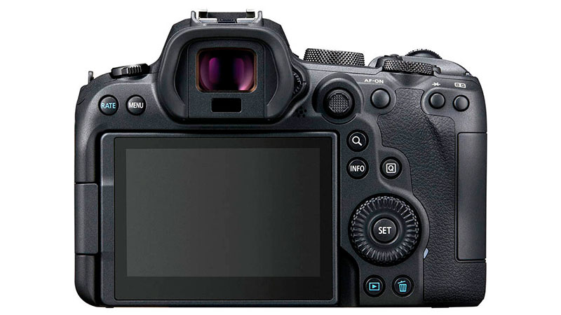 توفر كانون R6 نفس نظام Dual CMixel AF وتحتوي الكاميرا على عدسة معاينة إلكترونية 0.5 ″ 3.69m نقطة مع معدل تحديث عالي يصل الى 120 إطارًا في الثانية، وشاشة LCD خلفية تعمل باللمس 3.0 ″ 1.62m قابلة للتحريك.