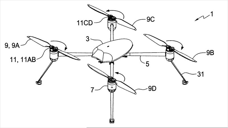 تصف براءة الإختراع الطائرة بالآتي:”جهاز طائرة ذات أجنحة دوارة بأذرع ممتدة من الجسم، ومجموعة دوارة متصلة بنهاية كل ذراع”، و فيما يلي بقية الملخص: