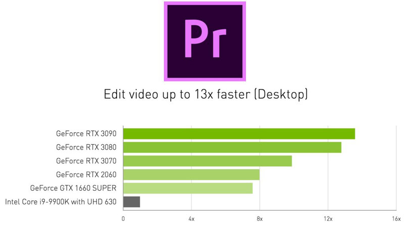 وفقًا لـ نفيديا يمكن لـ RTX 30 Studio تحرير الفيديو وتدريج الالوان بدقة 8K، تم تجهيز هذه الاصدارات بذاكرة فيديو تصل سعتها إلى 16 جيجابايت للعمل مع ملفات ضخمة وعبر تطبيقات متعددة في نفس الوقت، بالاضافة الى شاشات بدقة 1440p بكسل او 4K، مع تسريع GPU والذكاء الاصطناعي وترميز الفيديو بسرعة الذي يسمح للمبدعين بانجاز مشاريعهم بـ “وقت قياسي”.