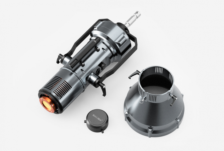 يستخدم الضوءعدسة فرينل البورسليكات مع نظام تركيز بؤري بزاوية اشعاع قابلة للتعديل من 15 درجة إلى 60 درجة وهو متوافق مع نظام S-mount لتثبيت معدّلات الإضاءة، المصباح مصمم من قطعة واحدة مقوى بالكربون بلون أسود غير لامع، تم تصميم كل مكون من مكونات ماكسيما وهندسته وتجميعه في إيطاليا، لذلك تقدم الشركة ضمانًا لمدة 3 سنوات.