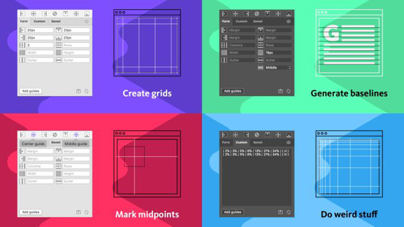 وبدلاً من إعداد الهوامش والدلائل يدوياً، تقوم إضافة Guide Guide بكل المهام الصعبة نيابةً عنك. كإضافة أدلة اعتماداً على لوحة الرسم أو التحديد الذي تعمل عليه، فقط قم بتعيين الحواف ونقاط المنتصف، وإنشاء ومشاركة شبكات مخصصة. يتوفر إصدار تجريبي لمدة 14 يوم (بعد ذلك تكلف 7$ دولار امريكي في الشهر).