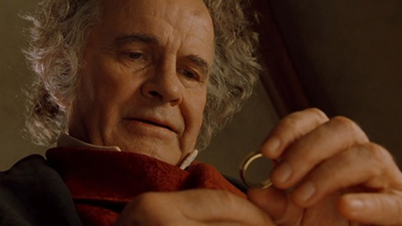 في احد المشاهد نلاحظ وجه شخصية بيلبو نصفه مضاء ونصفه في الظلام، يوضح الصراع الذي يواجهه وهو يفكر في الخاتم، ينتهي المشهد مع الخاتم يحدق مباشرة الى شخصية Gandalf بلقطة من وجهة نظر جعلت الخاتم شخصية في الفيلم.