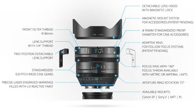 لنلق نظرة على الشريحة أدناه التي توضح ميزات البناء الخارجية لـ Irix Cine 15mm: